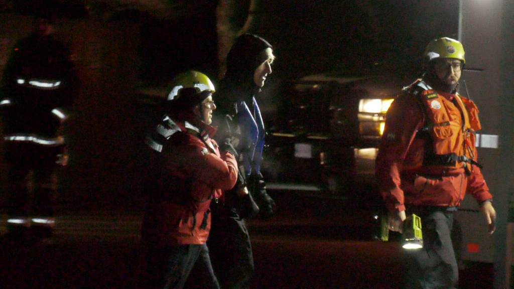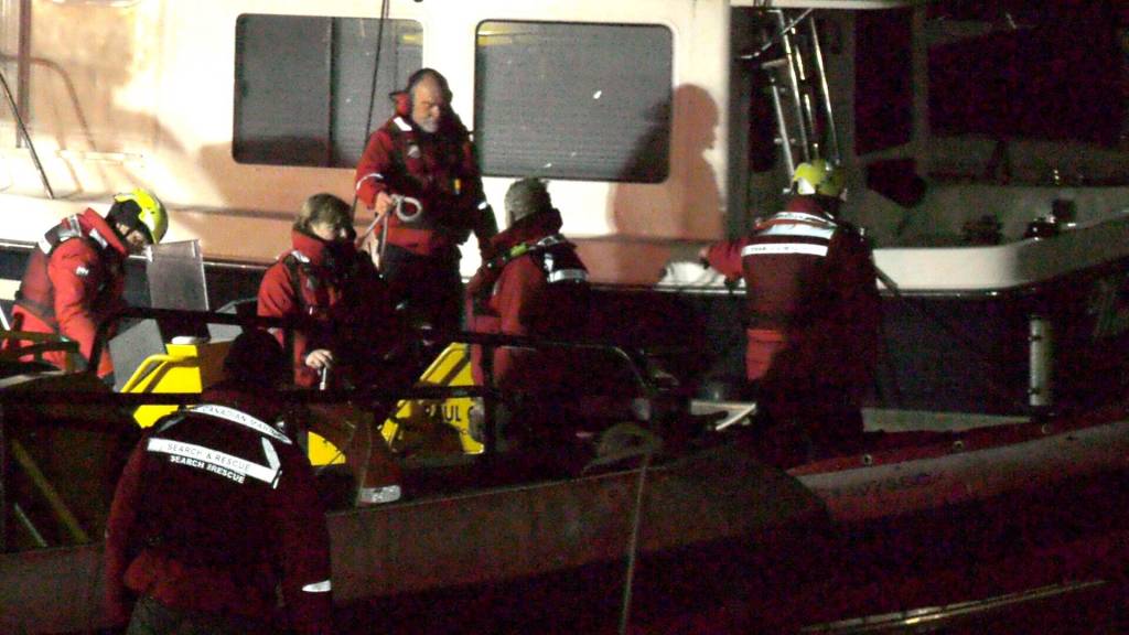 The paddler was reached shortly before 3 a.m. in a rescue that included two vessels and eight members of the Royal Canadian Search and Rescue along with assistance from the RCMP and Courtenay and Comox Fire Department members who set up large lights to illuminate the area.